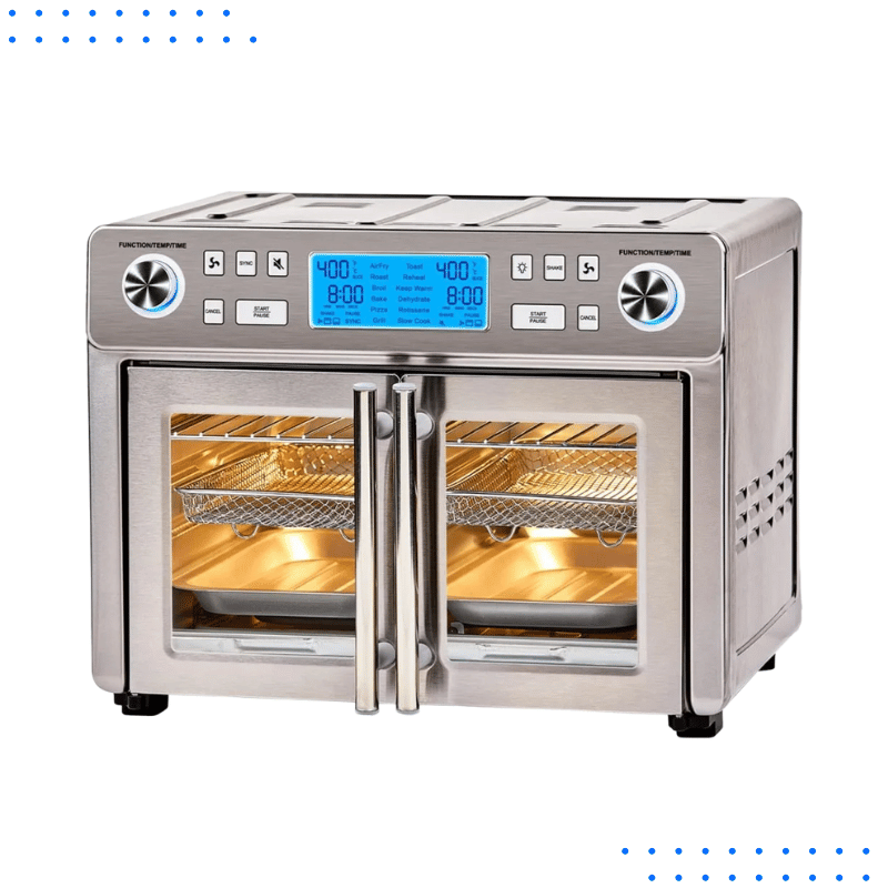 The Dual Zone 360 Air Fryer Oven Combo is an excellent choice for families who need to prepare multiple dishes at once. With its large capacity, oil-free cooking, and French door convenience, it’s a premium upgrade for any modern kitchen.